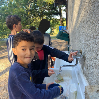 Ce matin après un réveil dans la joie et la bonne humeur, notre petit groupe s'est prêté au jeu de la vaisselle...