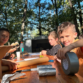 ... avant de commencer leur activités de la matinée : fabrication de jumelles et boussoles pour nos explorateurs