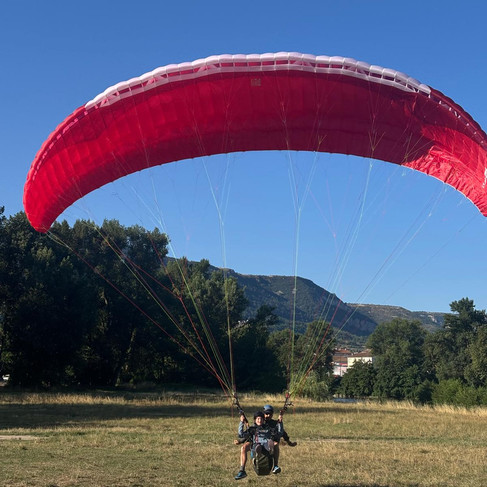 Un lever matinal à 6h30 a permis au groupe de se rendre au petit matin sur les hauteurs de Millau pour s’ envoler en parapente !!